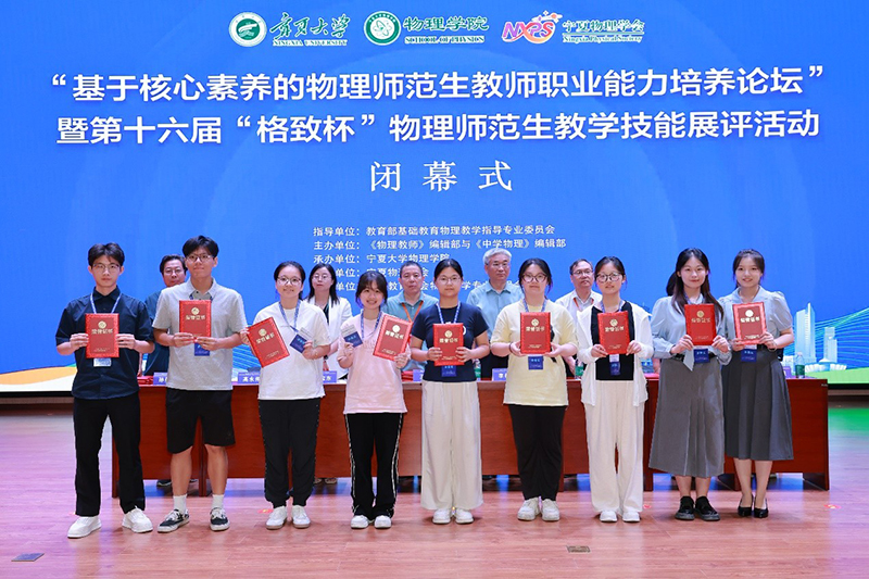 7月27日,第十六届“格致杯”全国物理师范生教学技能展评活动圆满落幕。大赛由教育部基础教育物理教学指导专业委员会指导、《物理教师》《中学物理》编辑部主办、宁夏大学承办、宁夏物理学会协办、中国教育学会物理教学专业指导委员会支持。来自全国117所高校、1400余名物理学师范生同台竞技,其中包括北京师范大学、华东师范大学、北京航空航天大学、湖南师范大学等知名高校选手。