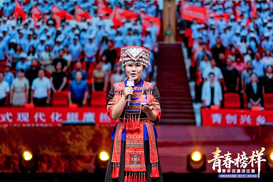 其中,外国语学院24级英语五班廖端端同学凭借作品《春风助学:侗乡岭内的生命突围与爱的传承》过关斩将,以95.93分的高分荣获全省一等奖。舞台上,廖端端同学身着一袭素雅侗族服饰,以侗乡岭里“阿妮”的真实助学故事为引,深情诉说了国家助学政策为山区孩子们点亮人生、改变命运的历程。从“困于深山的迷茫”到“政策照进的曙光”,从“受助圆梦的感恩”到“回报乡土的传承”,每一个片段都勾勒出侗乡学子在助学春风中成长的轨迹,每一段话语都传递着“共住一条江,有事大家帮”的温暖侗乡精神。